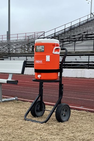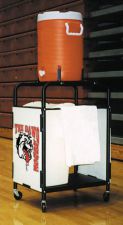 | Transport from 5-7 gallon coolers on this tough sideline dolly. Constructed of 1" square powder coated steel tubing and large 8" wheels for easy maneuverability on turf and tracks. This unit comes with a wire basket for extra sleeves of cups. Ships U.P.S.