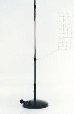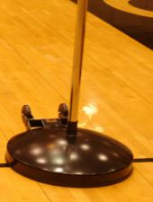| This unit comes with one heavy duty steel base with vinyl edge guard and no-mark wheels, one plated steel upright, which reaches to a height of 8.5 ft., and two multi-purpose ring slides for adjustable height and varied uses. The base, when empty, is light enough for a UPS shipment but may be filled with sand, concrete or other material for more stationary use.